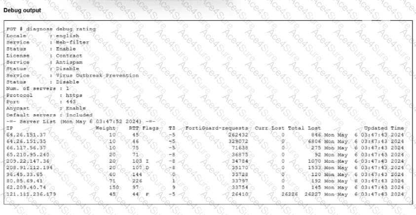 [Reference:, , FortiGate Security 7.6 Study Guide (Security Fabric & FortiGuard): "In diagnose debug rating, the 'I' flag stands for Initial, which is the IP address resolved by DNS. The 'D' flag stands for Discovered.", , Questions no: 94, , Verified Answer: C, D, , Comprehensive and Detailed Explanation with all FCSS - Network Security 7.6 documents:, , The error message iprope_in_check() check failed, drop in a debug flow indicates a failure in the Local-In Policy check. This function determines whether traffic destined to the FortiGate itself (management traffic or local services) is allowed., , C. The packet was dropped because the trusted host list is misconfigured:, , Reason: If an administrator has configured Trusted Hosts (limiting administrative access to specific source IPs), and a packet arrives from an unauthorized IP, the iprope_in_check function will reject it immediately to protect the device., , D. The packet was dropped because the requested service is not enabled on FortiGate:, , Reason: The most common cause for this error is that the destination interface does not have the specific service (e.g., SSH, HTTPS, PING) enabled in its set allowaccess configuration. If the service is not listening/allowed on that port, the input check fails and drops the packet., , Why other options are incorrect:, , A: If traffic is dropped by a standard firewall policy (traffic passing through the FortiGate), the debug message is typically denied by policy x or no matching policy, not an iprope (Input Property/Policy Enforcement) failure., , B: A routing issue where the source is unreachable results in a Reverse Path Forwarding (RPF) failure, typically logged as reverse path check fail, drop., , Reference:, , FortiGate Troubleshooting Guide (Debug Flow): "The message iprope_in_check() check failed indicates the packet was denied by the Local-In policy, often due to missing allowaccess settings or Trusted Host restrictions.", ]