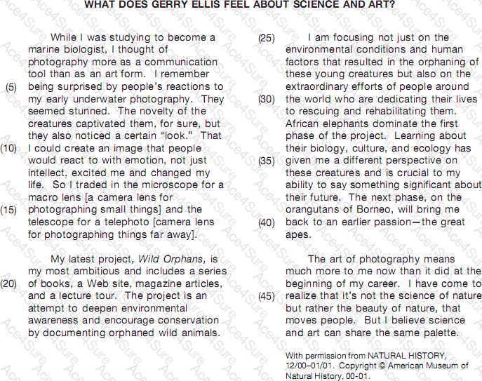 Gerry Ellis is a highly respected, well-established nature photographer who makes his living with his photographs. Based on this information and the information in this excerpt, what has Gerry Ellis been able to do with his life?