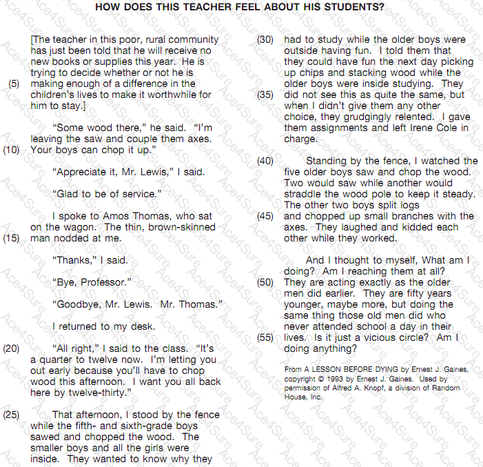 Later in the story, the teacher says, "You have to believe to be a teacher." How does this statement differ from the teacher’s feelings in this excerpt?