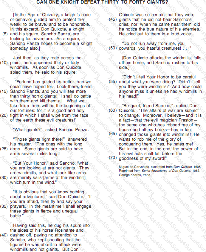 On the basis of Sancho Panza’s behavior in the passage, which of the following would he be most likely to do?