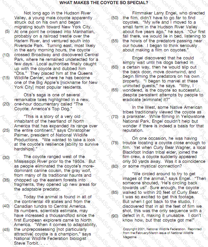 Suppose the scientific community wanted to study the possibility of establishing a colony in outer space on the planet Mars. Which one of the coyote’s qualities would make the animal a good choice for an experimental colony?