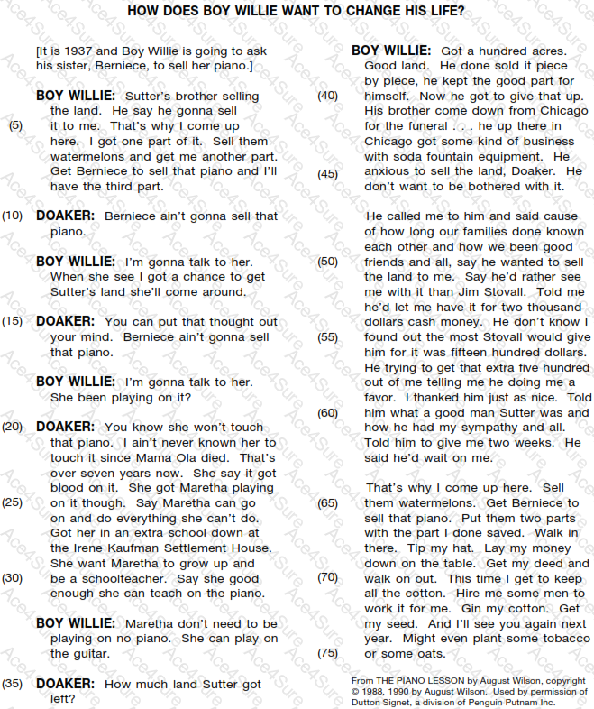 Which one of Berniece’s character traits is revealed when doaker says twice that "Berniece ain’t gonna sell that piano" (lines 10-11 and 16-17).