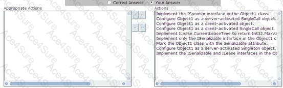 Sam works as a Software Developer for GenTech Inc. He creates a .NET remote object, named Object1. Object1 holds a Hashtable object, or the name and value pairs. Seven client applications use Object1 to get and set property values. Sam wants to ensure that the properties set by one of the client applications can be accessed by all the applications using Object1. Choose the appropriate actions he will take to accomplish this.
