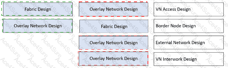When planning a VXLAN-based virtualized campus network, you need to design underlay, fabric, and overlay networks. Drag the modules on the left to the correct locations on the right. (Token is reusable)