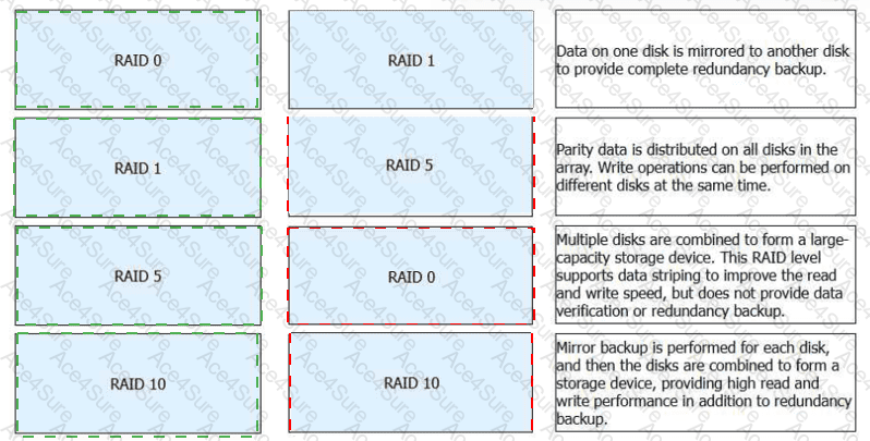 Match the following RAID levels with their respective descriptions.