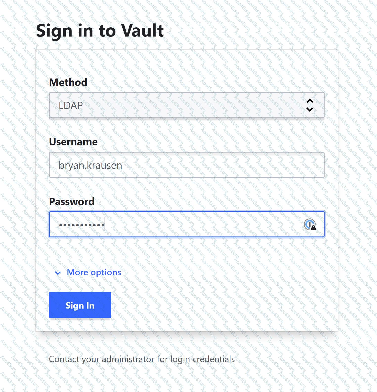 Your organization has enabled the LDAP auth method on the path of corp-auth/. When you access the Vault UI, you cannot log in despite providing the correct credentials. Based on the screenshot below, what action should you take to log in?