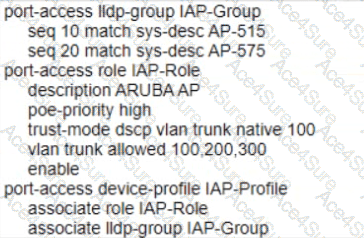 A system engineer needs to preconfigure several Aruba CX 6300 switches that will be sent to a remote office An untrained local field technician will do the rollout of the switches and the mounting of several AP-515s and AP-575S. Cables running to theAPs are not labeled.