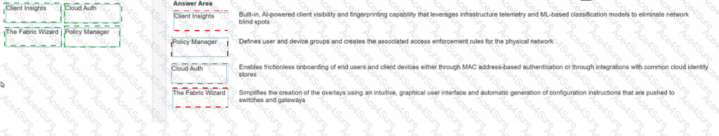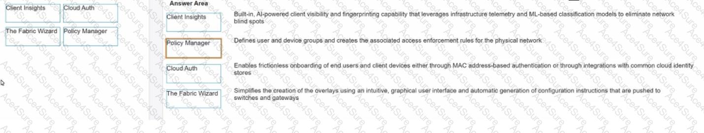 Match the solution components of HPE Aruba Networking Central NetConductor (Options may be used more than once or not at all.)