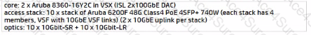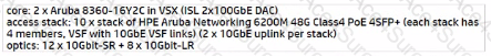 Access Slack: 10 x Slack of Aruba 6200F 48G Class4 PoE 4SFP- 740W each stack has A members. VSF