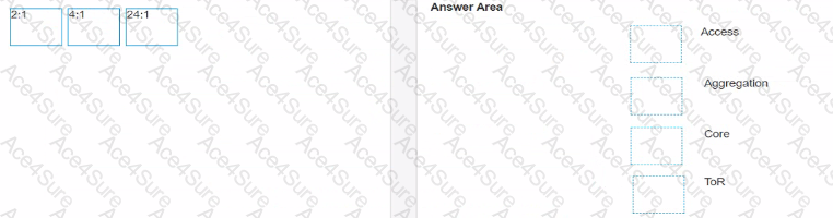 You aregoingwith a 3-tierdesign and need to calculate the oversubscription ratio ontheAccess. Distribution. Core, and ToR Layer. Whatis a suitable oversubscriptionratio for each layer?