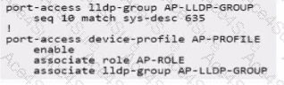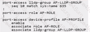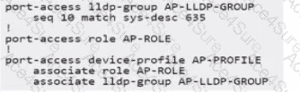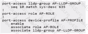 Which setof commands willapply the device profile 'AP'to the device shown in the LLDP neighbor output below?