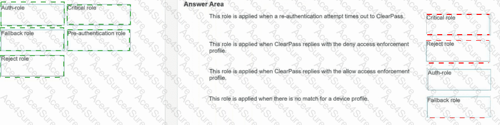 3. Auth-Role → Applied when ClearPass replies with the allow access enforcement profile