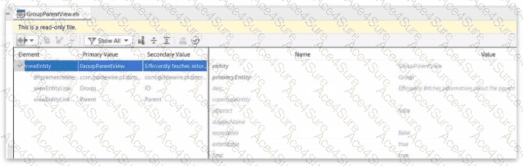Because GroupType is aTypekey(a field linked to a Typelist), the correct metadata tag to use within the ViewEntity definition is<viewEntityType>. This tag maps the typekey from the underlying Group entity to a field on the GroupParentView object. By adding this to the .etx file, you ensure the change is upgrade-safe and follows Guidewire's architectural standards.