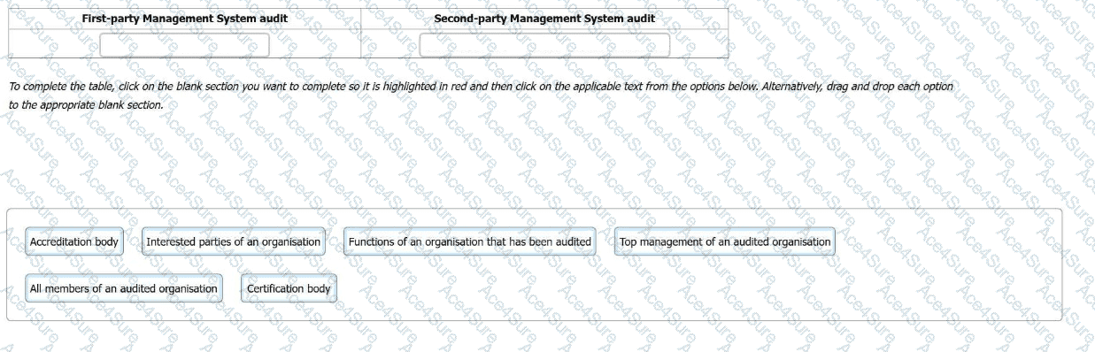 First-party audit – conducted by the organization itself, or on its behalf (internal audit).✅ The audit client is all members of the audited organisation, because the audit is internal, involving all functional areas under the organization’s control.