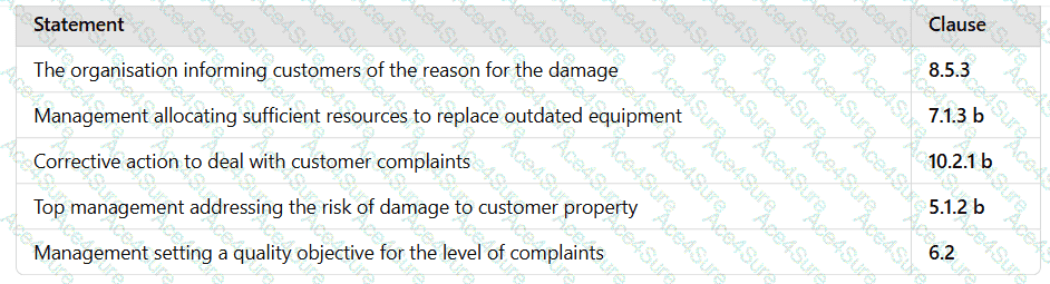Match the ISO 9001 Clauses to the statements.