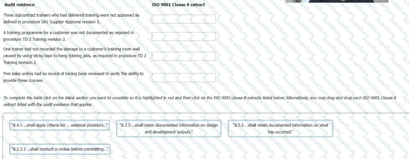 You have gathered audit evidence as outlined below. Match the ISO 9001 Clause 8 extract to the audit evidence.