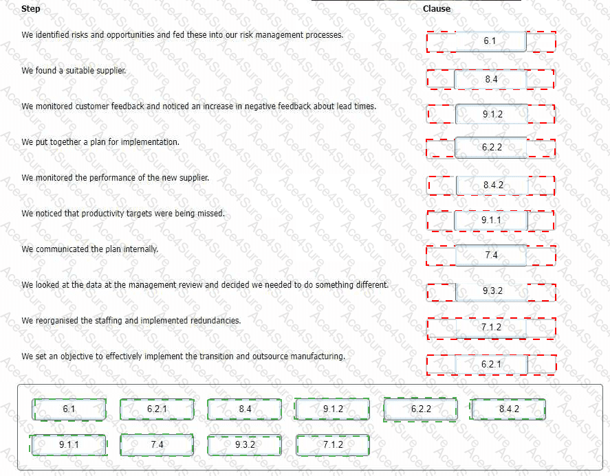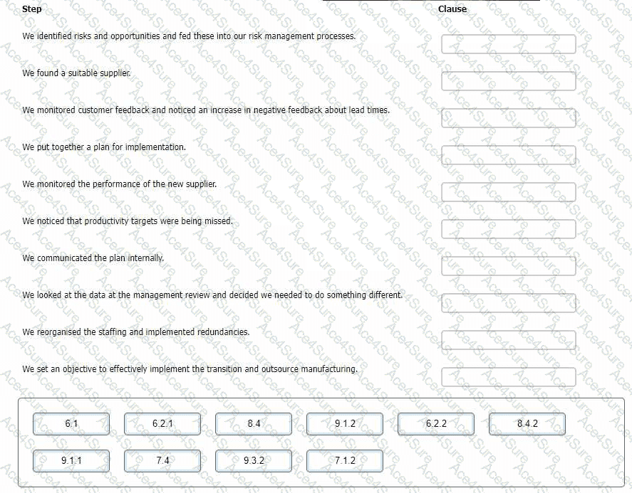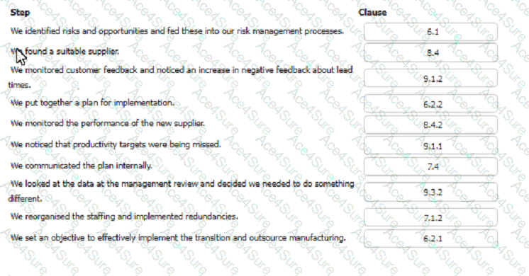click on the ISO 9001 clauses listed below. Alternatively, drag and drop each clause to show which step the