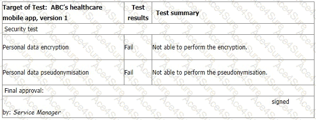 The IT Manager explains the test results should be approved by him according to the software security management procedure. The reason why the encryption and pseudonymisation functions failed is that these functions heavily slowed down the system and service performance. An extra 150% of resources are needed to cover this. The Service Manager agreed that access control is good enough and acceptable. That's why the Service Manager signed the approval.
