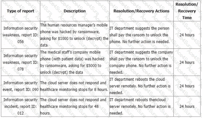 You are performing an ISMS audit at a residential nursing home that provides healthcare services. The next step in your audit plan is to verify the information security incident management process. The IT Security Manager presents the information security incident management procedure and explains that the process is based on ISO/IEC 27035-1:2016.
