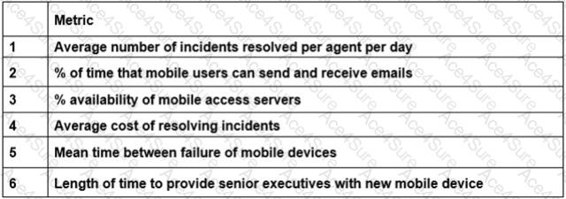 The project manager is creating a set of metrics to measure the service provided to senior executives once the improvements have been made. There must be a balance of technology, process and service metrics.
