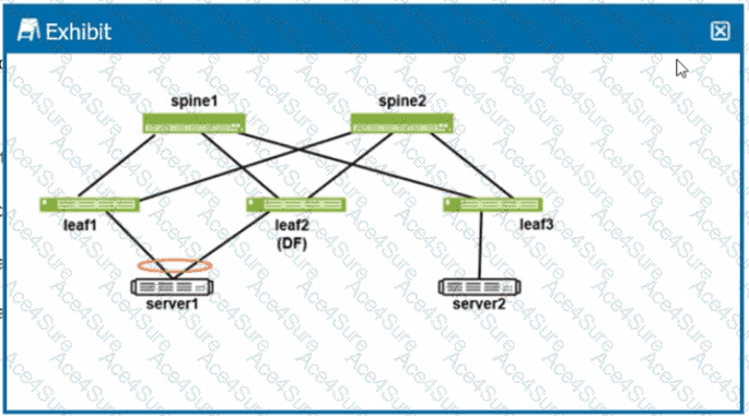 The exhibit explicitly states that Leaf2 is the Designated Forwarder.