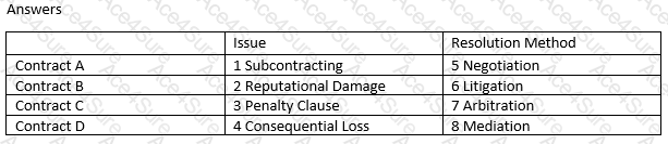 Arbitration - this is a binding resolution made by a third party. This answer could be litigation, but that option has been taken by box 6 and you can only use the answers once. Mediation would not be a binding resolution and negotiation doesn't involve a third party.