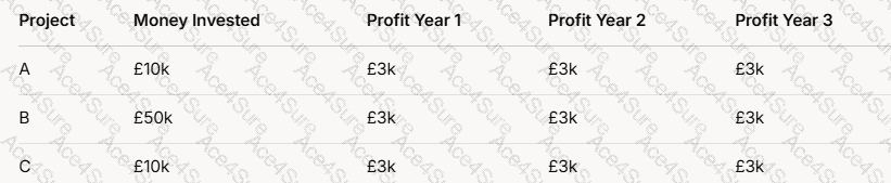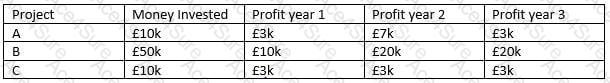 Project C: £3k (Year 1) + £3k (Year 2) + £3k (Year 3) = £9k