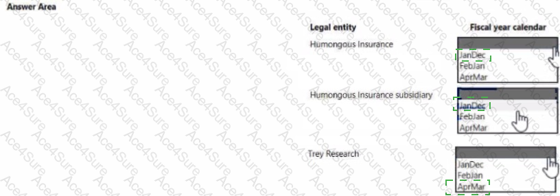 How should you configure the fiscal year calendars? To answer, select me appropriate options in the answer area.