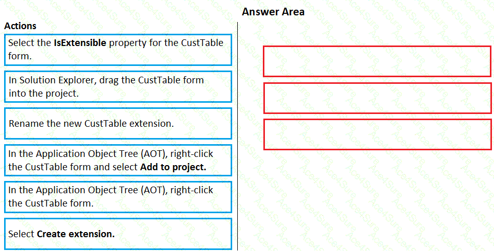 Which three actions should you perform in sequence? To answer, move the appropriate actions from the list of actions to the answer area and arrange them in the correct order.