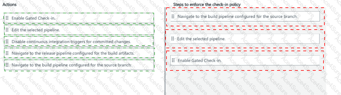 You need to enforce a policy requiring that any check-in is approved only after the build pipeline has successfully completed.