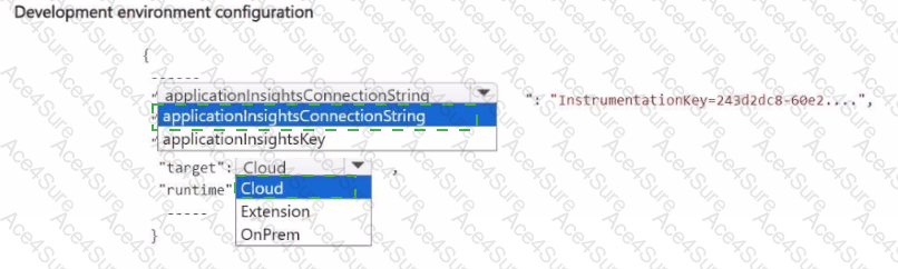 How should you complete the app.json file? To answer, select the appropriate options in the answer area.