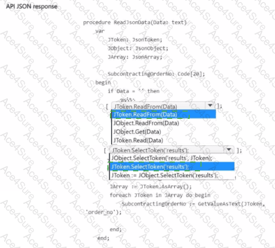 The AL code is trying to read JSON data from a response and process it to extract subcontracting order numbers. It uses JsonToken, JsonObject, and JsonArray to work with the JSON data.