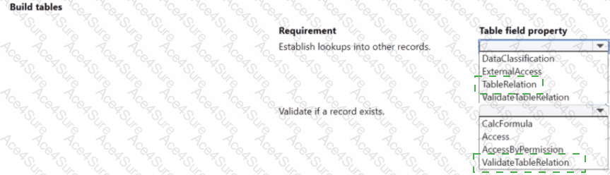 Which table field property should you use? To answer, select the appropriate options in the answer area.
