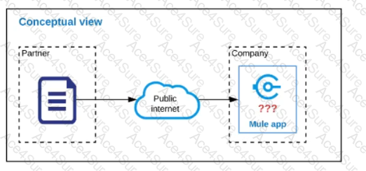 An organization is designing a Mule application to receive data from one external business partner. The two companies currently have no shared IT infrastructure and do not want to establish one. Instead, all communication should be over the public internet (with no VPN).
