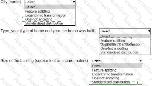 An ML engineer is working on an ML model to predict the prices of similarly sized homes. The model will base predictions on several features The ML engineer will use the following feature engineering techniques to estimate the prices of the homes: