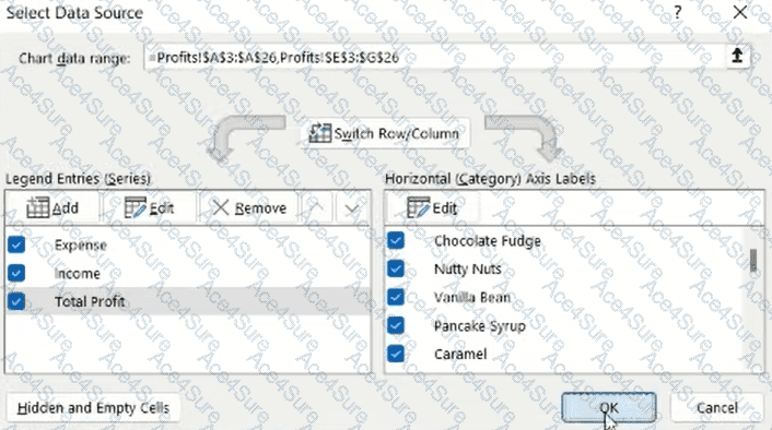 On the Chart worksheet, include the Total Profit data on the Flavor Expenses, Income and Profit chart.