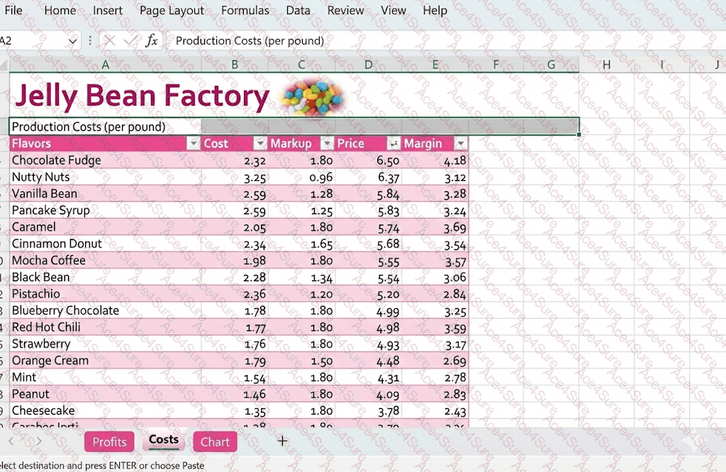 A shop you manage sells gourmet jelly beans. You are tracking the amount of jelly beans sold each quarter and summarizing the information in aworkbook.