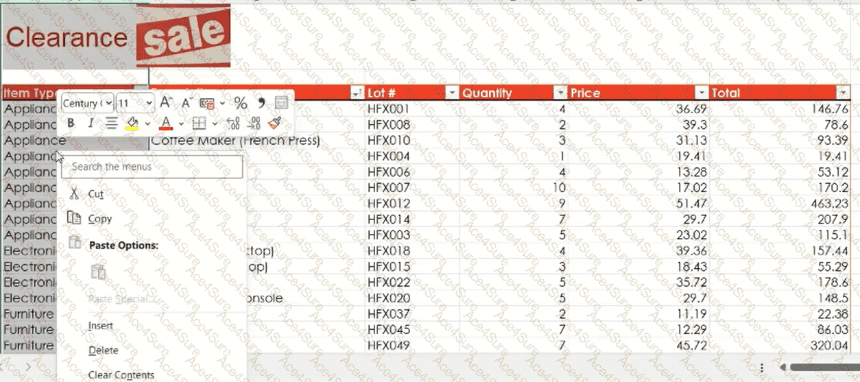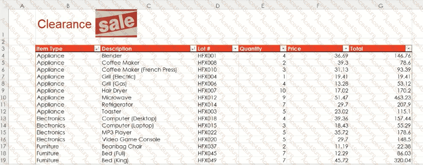You are the administrative assistant for a retail company that is going out of business. You've been tasked to prepare a workbook for the clearance sale.