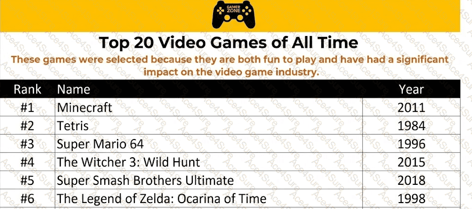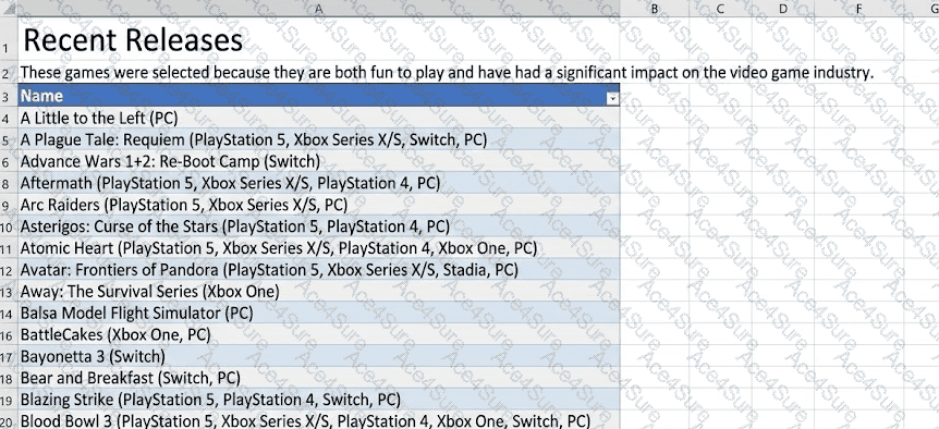 You are tracking video game popularity by compiling a workbook to document your findings.