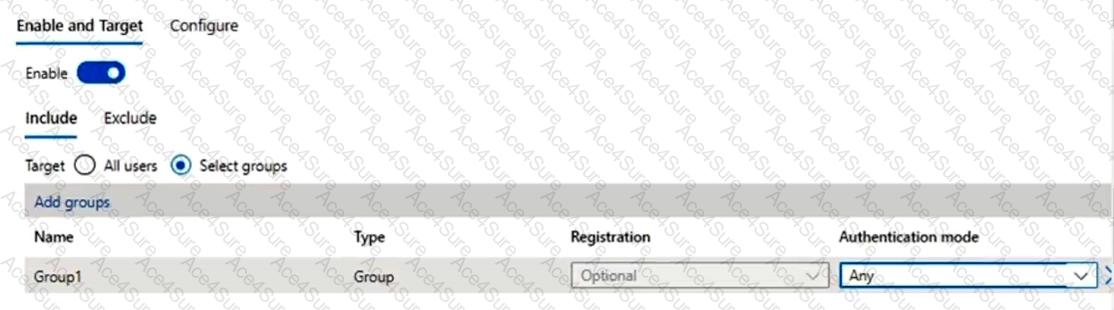 You configure the Microsoft Authenticator authentication method policy to enable passwordless authentication as shown in the following exhibit.