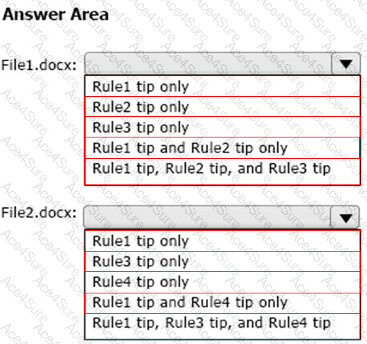 Which policy tips are shown for each file? To answer, select the appropriate options in the answer area.