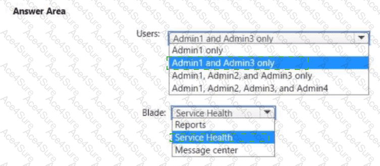 Which users can review the incidents and advisories, and which blade should the users use? To answer, select the appropriate options in the answer area.