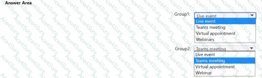 What should you recommend for each group? To answer, select the appropriate options in the answer area.