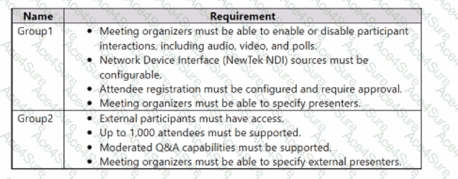 You have two groups that have meeting requirements as shown in the following table.