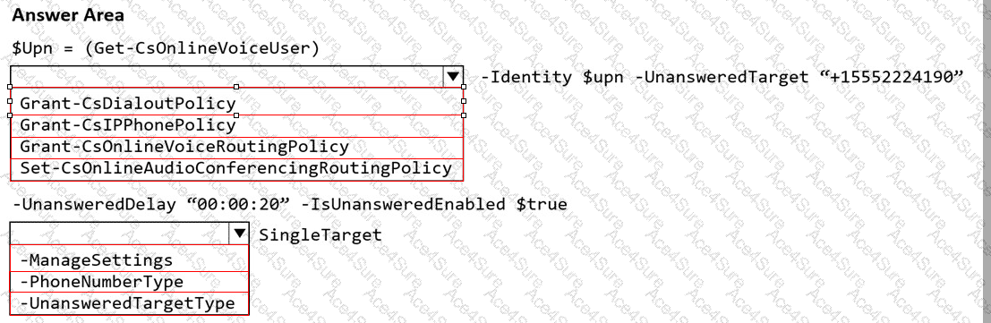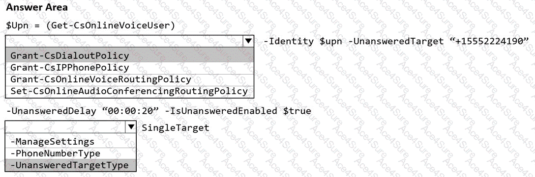 [Reference:, https://learn.microsoft.com/en-us/powershell/module/teams/set-csusercallingsettings, https://learn.microsoft.com/en-us/powershell/module/skype/grant-csonlinevoiceroutingpolicy, , , ]
