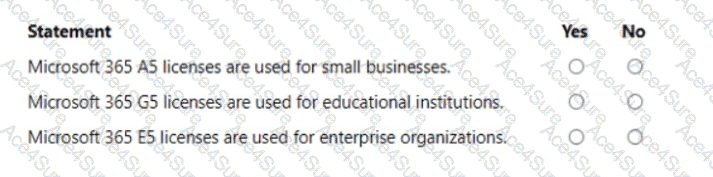 For each of the following statements, select Yes if the statement is true. Otherwise, select No.