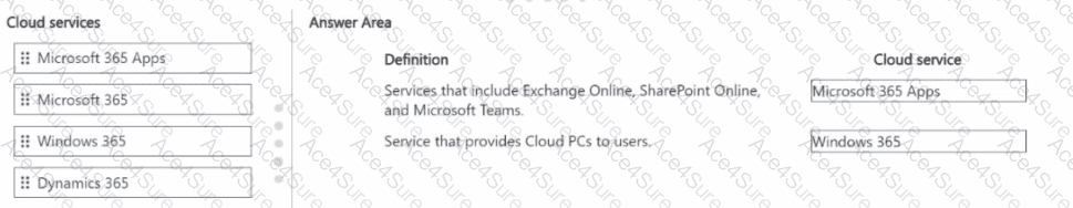 Match each cloud service to its definition.Each cloud service may be used once, more than once, or not at all.