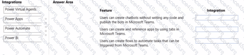 You need to recommend the Microsoft Power Platformintegration that provides the appropnate feature.