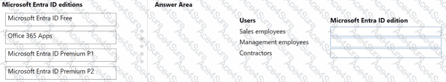 What should you use? To answer, drag the appropriate Microsoft Entra ID editions to the correct users. Each Microsoft Entra ID edition may be used once, more than once, or not at all. You may need to drag the splitbar between panes or scroll to view content.