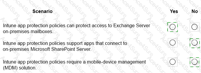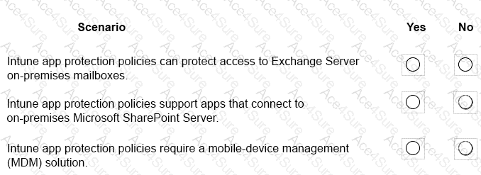 Which scenarios can you implement by using Intune? To answer, select the appropriate answer for the given scenarios.